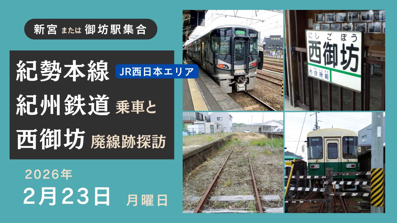 【新宮または御坊駅集合】紀勢本線〔JR西日本エリア〕&紀州鉄道に乗車と西御坊の廃線跡探訪|2026年2月23日