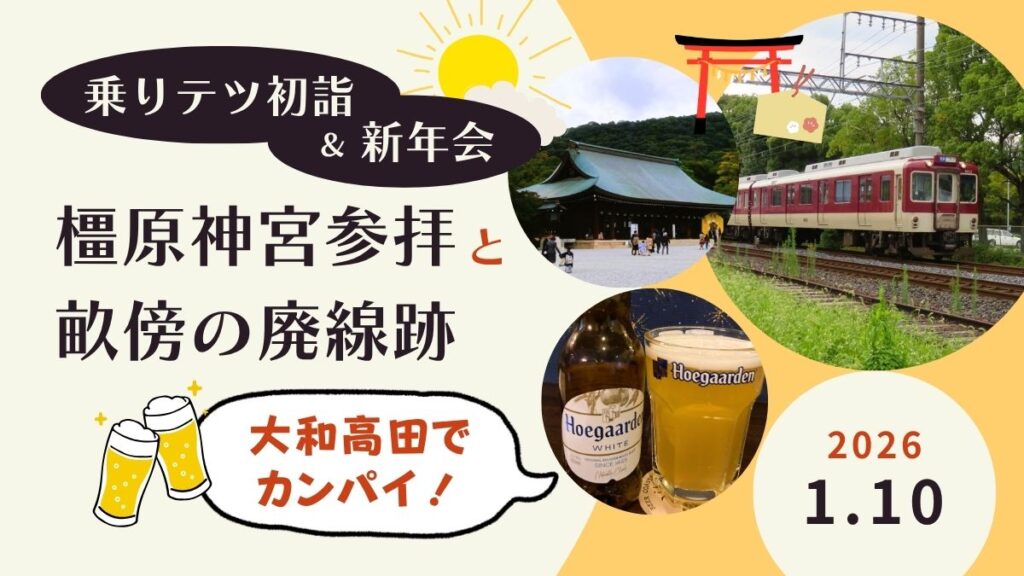 【橿原神宮前駅集合】乗りテツ初詣&新年会|橿原神宮参拝~畝傍の廃線跡探訪~大和高田でカンパイ!|2026年1月10日